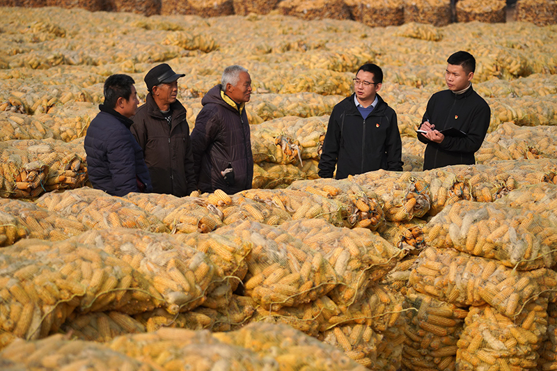 2020年12月10日,河北省巨鹿縣紀委監委工作人員(右一和右二)在巨鹿縣西郭城鎮柳洼村向村民了解扶貧政策落實情況。新華社記者 牟宇 攝